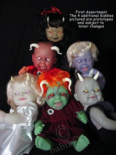 Девочки, кстати, это еще что! У меня где-то сохранилась фотка куклы — сороконожки, составленной из детских кукольных телец, с ручками и ножками… а вот голова была только у первого.