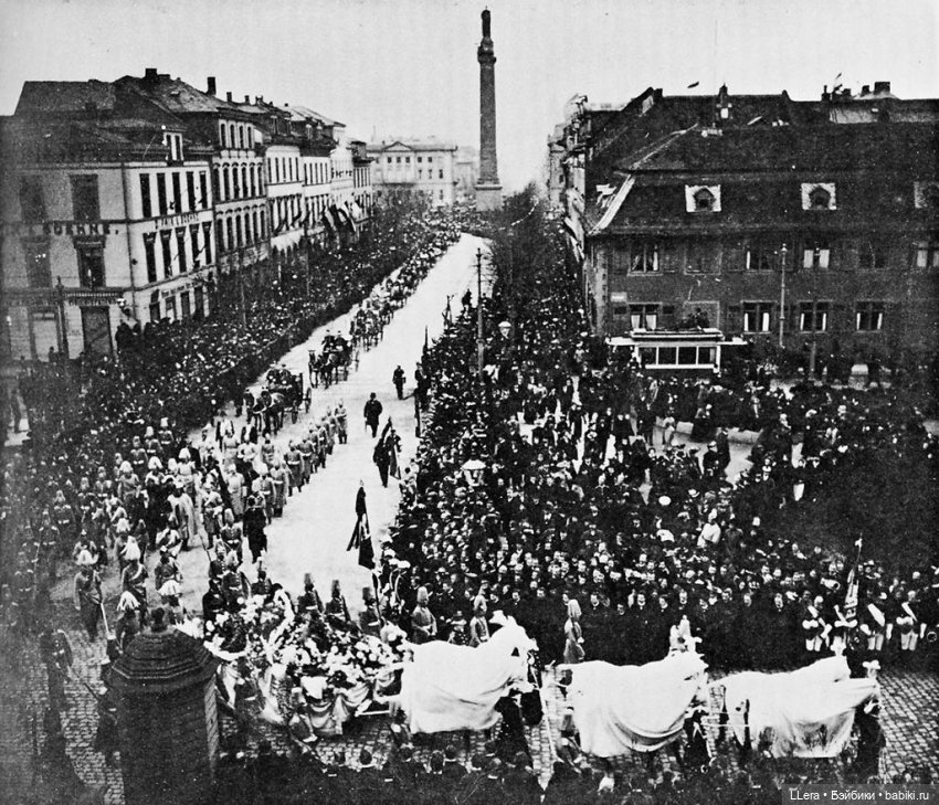 И фото похоронных торжеств. Видно как много людей Элизабет провожают.