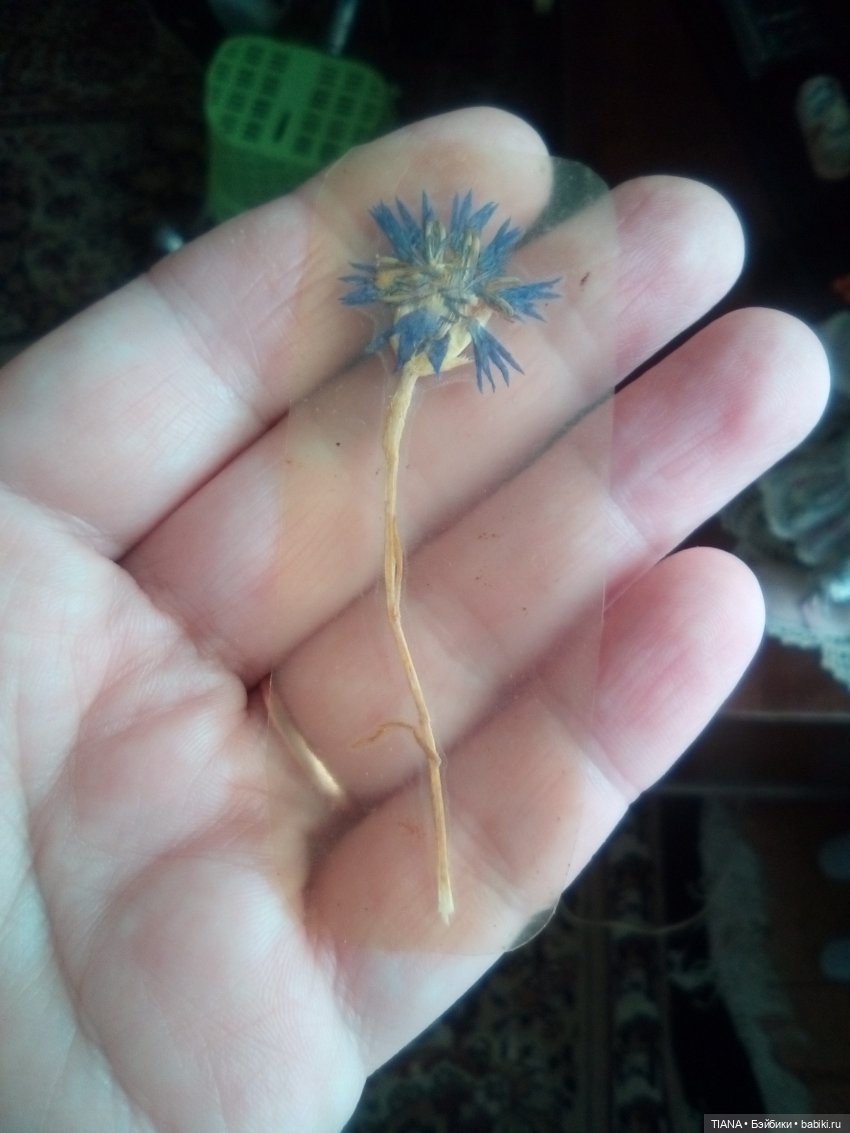 А у меня есть василёк, которому около сорока лет. Мне было лет четырнадцать, когда я его сорвала и засушила. А потом обклеила его с двух сторон клейкой плёнкой, которой учебники обворачивали, так сказать, " заламинировала". И вот он какой.