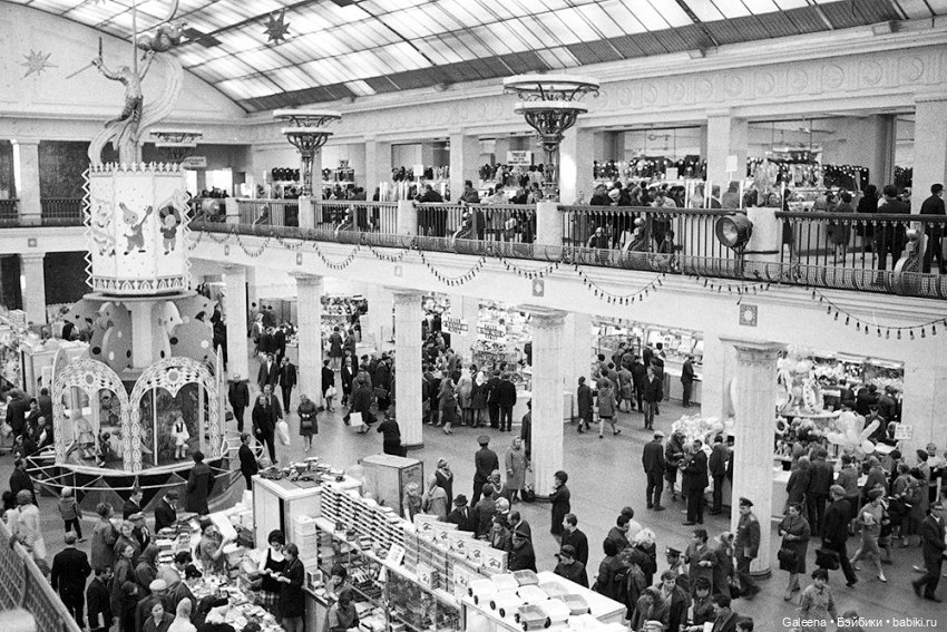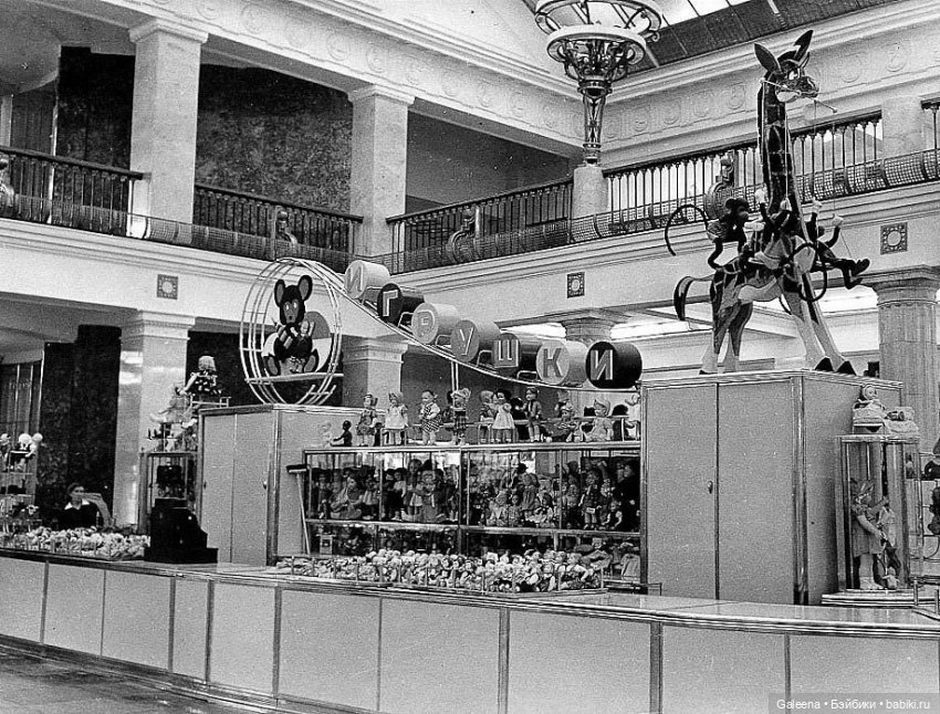 В 60-70-х годах эти секции по кругу на 1-м этаже, в одной секции кончались куклы всегда, в другой может и могли быть, вот бегали с родителями по ним, народу ужас всегда как много было, не подойти к прилавку. Всегда такой дефицит в советское время, это меня всегда, просто бесило.