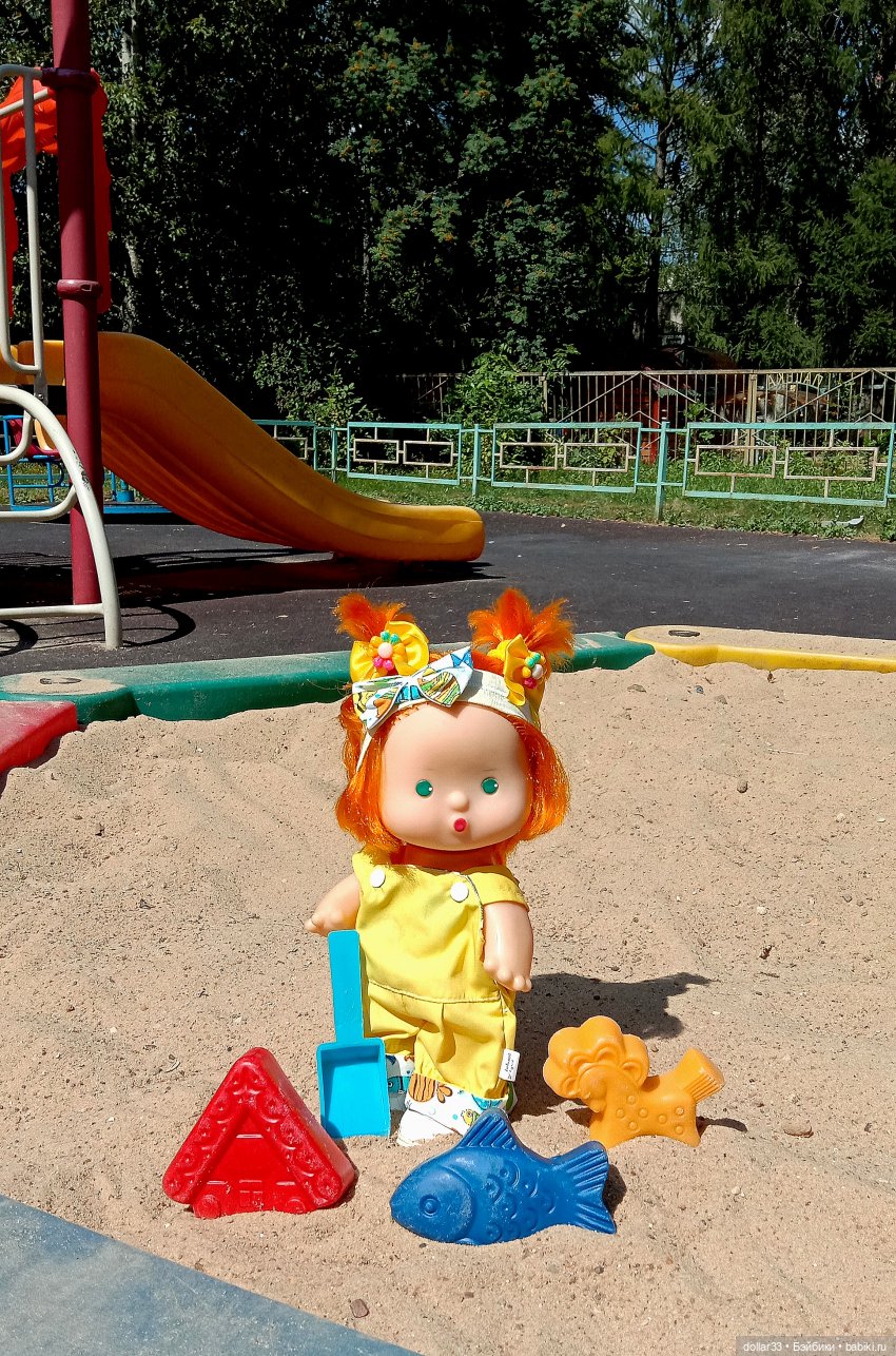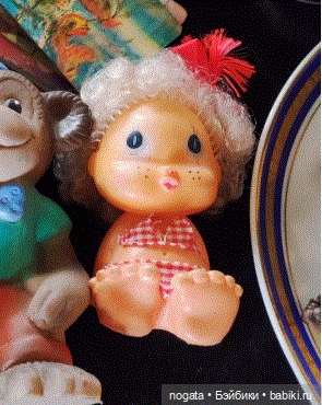 И куколка очень понравилась. Сама покупала почти такую же в Москве в 1996 году. Это югославское «солнышко». Моя была в красном купальнике, красном фетровом чепце и в таком же сарафанчике. А волосы рыжие-рыжие и в мелких кудряшках. Очень эта куколка меня радовала, дома мы ее называли «дайте ещё киселя!»