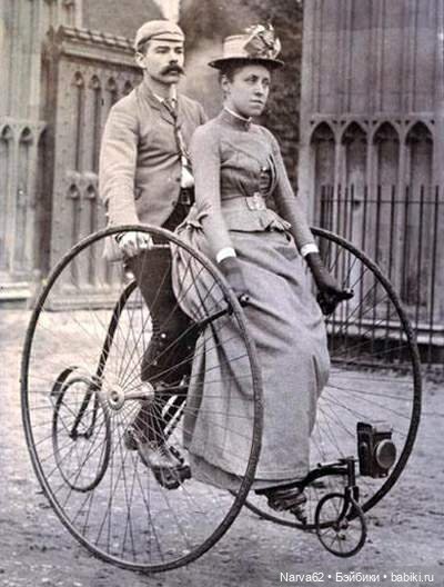 Пенни-фартинги были крайне неустойчивыми. Оседлать эту конструкцию можно было только в брюках. Поэтому для дам были придуманы элегантные трехколесные модели.