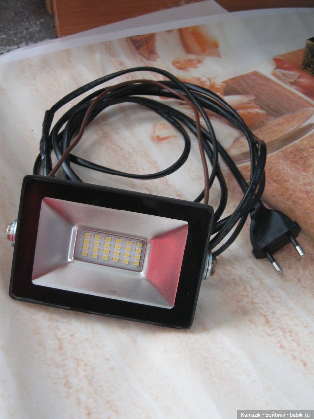 Да у меня такой же в шопике есть. Только без провода. Ну я ещё и торшером пользуюсь, если лень держать этот прожектор. У меня там светодиодная лампа — белый, холодный свет. С обычной лампой не то.