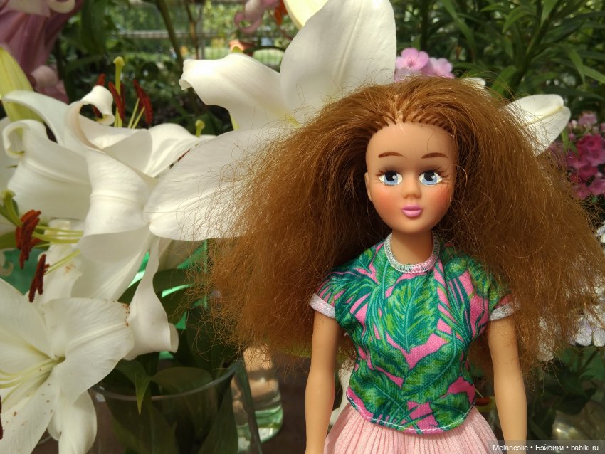 Редкая отечественная барбиобразная кукла Елена фабрики «Кумир». Про нее я даже отдельный топик делала. Она досталась мне с ногами, привинченными к деревянной подставке. Когда ее отвинтили, оказалось, что она в полном порядке (я думала, тело менять придется). Новая кукла, правда, с дырками в ступнях. Впрочем, туфли это скрывают.