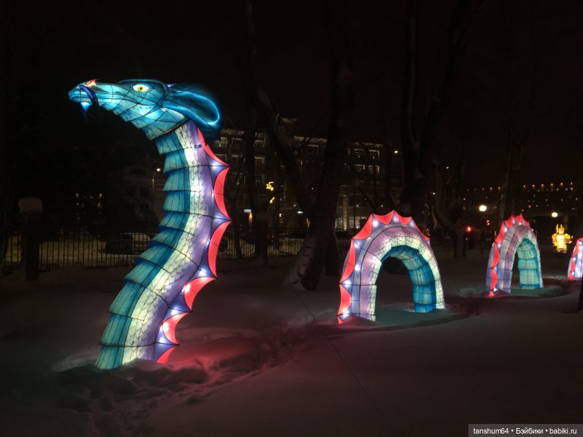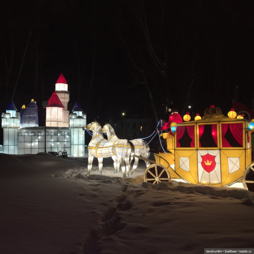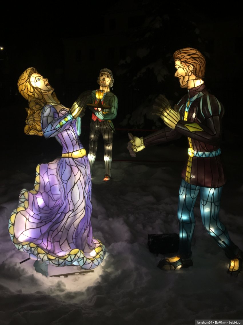 Хочу сказать, что эту сказку подарила нынче администрация города нам на Новый год. Каждая композиция имеет своё название, и сопровождается музыкой, звуками. Парк волшебных фонарей расположился на территории Петровского парка в нашем Архангельске. Сегодня морозно, но я решила съездить и прогуляться в парке. Эффект потрясающий!!! Столько эмоций, такое море позитива, возвращение в детство…