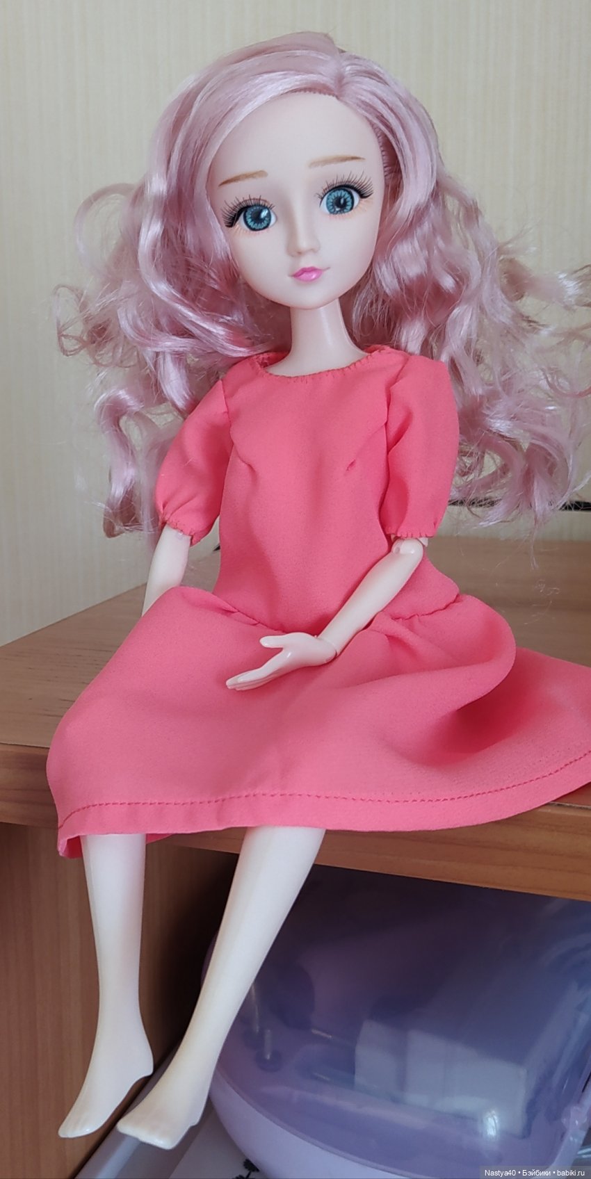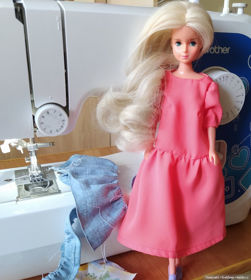 Радую себя рукоделием: вчера выкроила ещё одно платье, сегодня добралась до машинки и обнаружила недошитое платье, начинала его шить по какой-то готовой выкройке из интернета. С Бетти дошили его, примерили, такое свободное получилось))) Где-то для дочки куплена про запас принцесса Барби пышка, надо на нее примерить. Начали шить наряд из дня первого. Полчаса пролетели моментально.