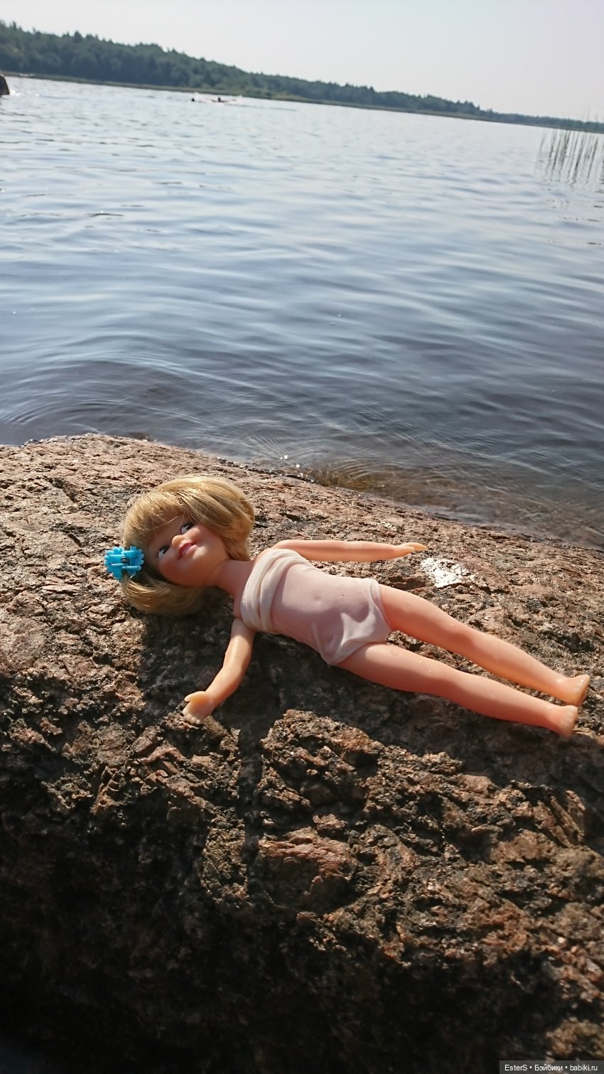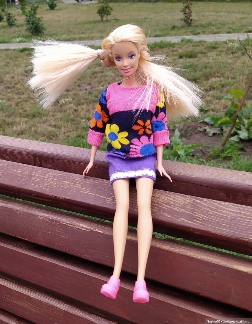 Барби долго сидела у меня без внимания, как сделала ей волосы и починила шею, уж полгода прошло, наверное.
