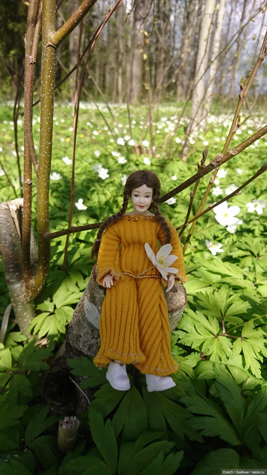 Мы с мужем ходили сегодня в лес. Я его вытащила. И зря. Субботнего дождя для грибов не хватило, лес сухой, под ногами все трещит, грибов нет. Я себя утешаю тем, что погуляли ведь, а так дома дела бы делала. Кукол я в лес не брала, но шлю фото Флоренс в весеннем лесу.