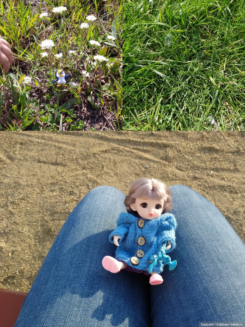 С утра была прогулка. С детьми зашли в самые нужные два магазина: Фикс прайс и Галамарт, решила порадовать себя разглядыванием мелочи всякой. Насмотревшись, купила детям мыльные пузыри и скорее в парк их расходовать. Своей куклы с собой не было, сделала фото игрушек дочки и пузыря, который дольше всех не лопался в траве.