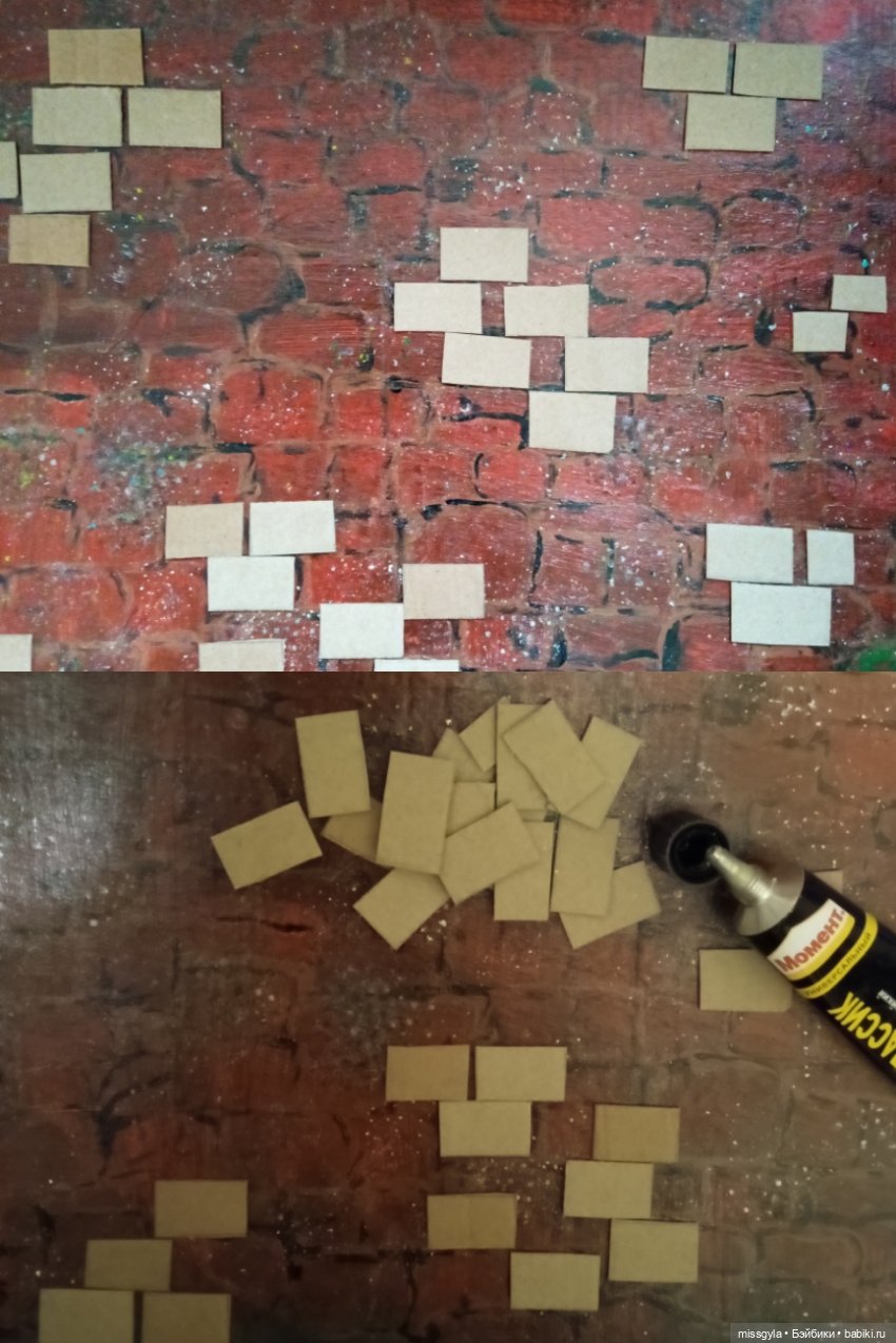 На стену подклеила кирпичиков для придания некой объёмности, завтра покрашу