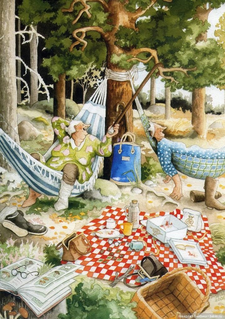 Серия весёлых открыток «Аnarkistiset mummot», что в дословном переводе с финского — «Бабушки-анархистки». Эти работы являются гениальной подсказкой тем, кому уже далеко за 60 и как все же можно жить и проводить время в старости…