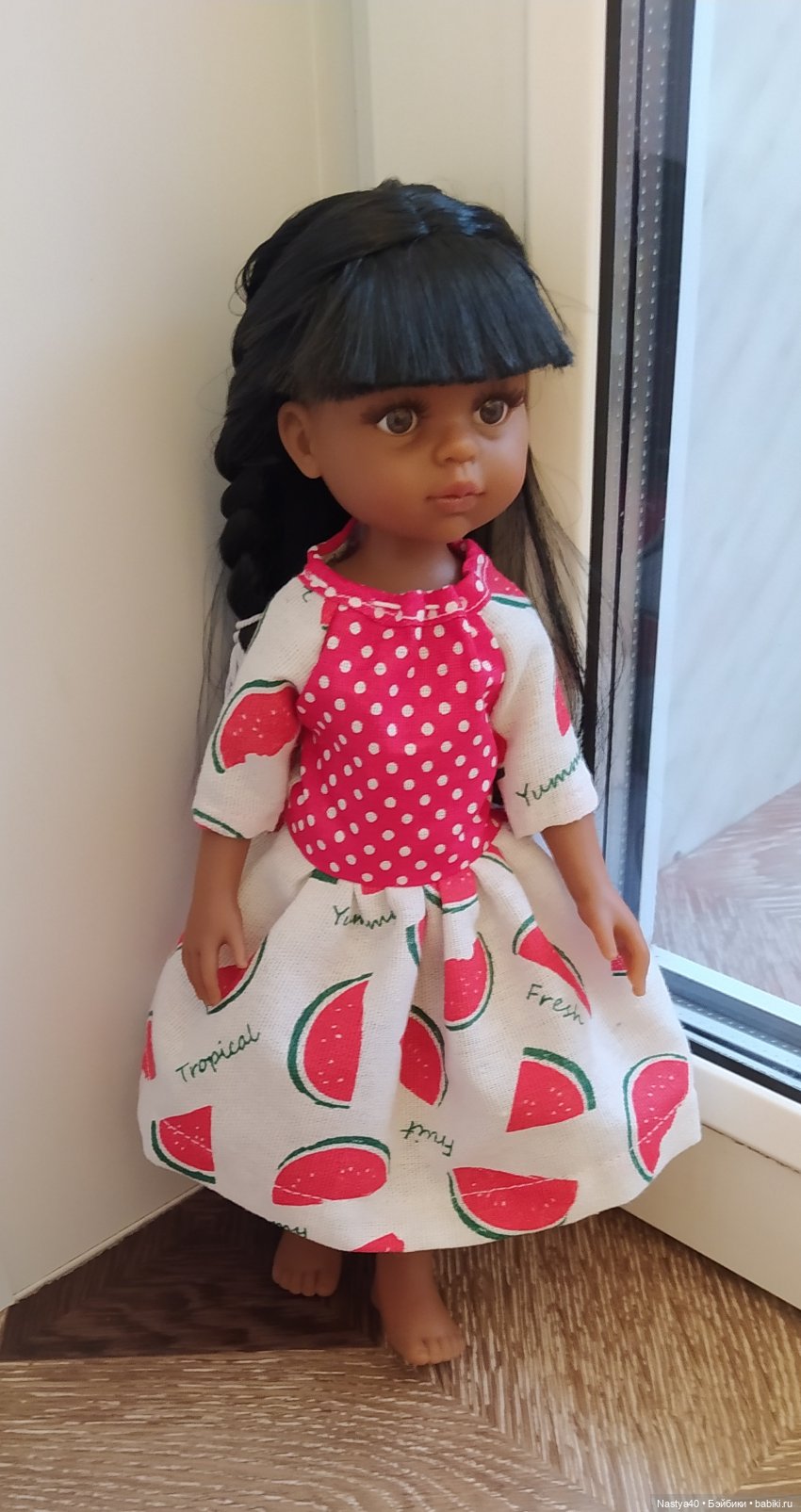 Прикрепляю уличное фото моей Миланы, передающей всем, читающим этот коммент, привет и пожелание удачи. Фотографию, правда, эту делала возле дома — по делам в другой район куклу с собой не повезла.