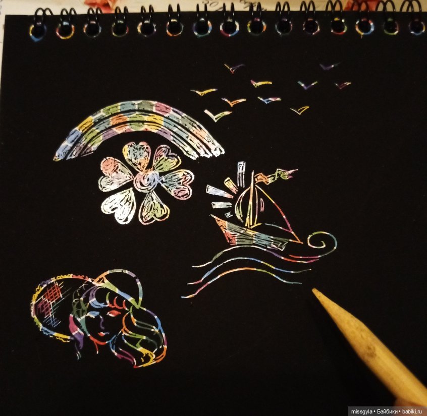 Мне подарили альбомчик для рисования гравюр, почеркалась — забавно.