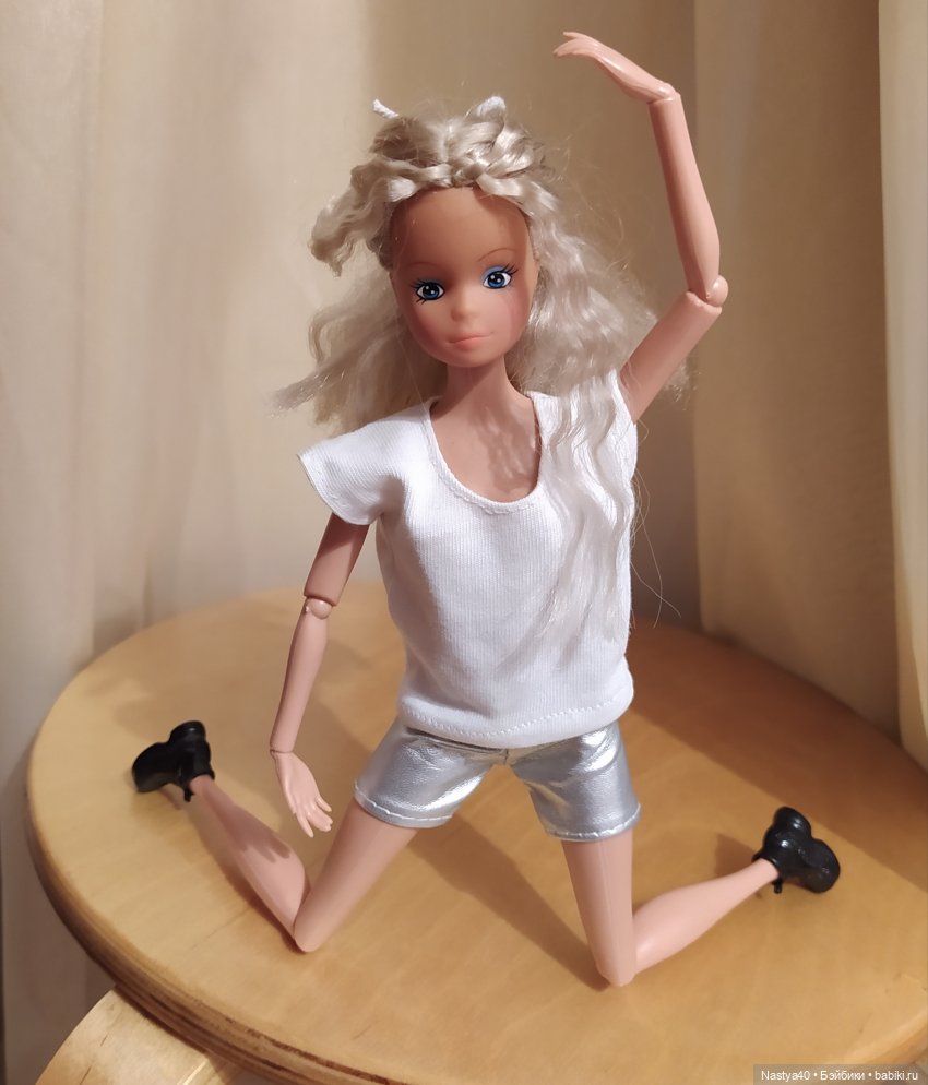 Вчера не до отчёта было, ОРВИ атакует. Сегодня решила поболеть активно, развела приготовление пищи: первое, второе, десерт и компот, под рок-баллады помыла полы))) Штеффи со мной разминалась, у нее грациознее получилось. Блин, здорово, когда у куклы все гнется и поворачивается, интересно с ней поиграть. Сижу, как маленькая, кручу-верчу ее. Определенно, такая Штеффи мне нравится.