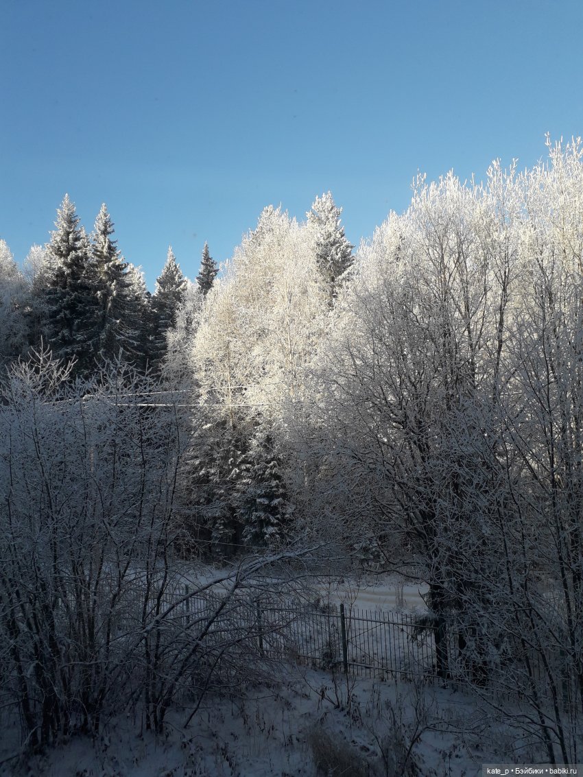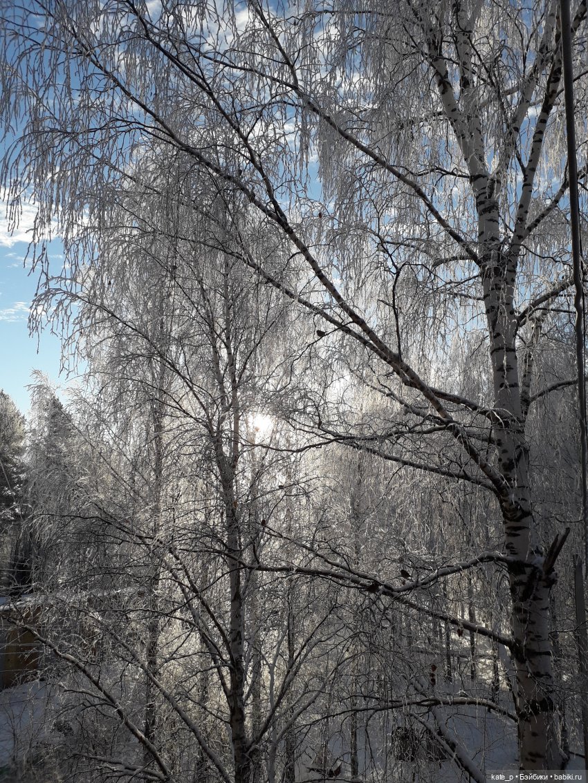 Сегодня у нас на улице красота, мороз и солнце! На обеде полюбовалась видом из окна, как в лесную сказку попадаешь: солнце на голубом небе, елочки под инием, птицы прыгают по деревьям