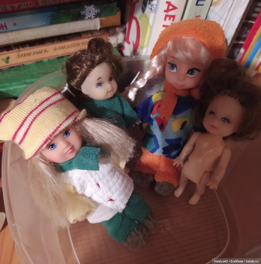 К НГ во дворе у нас ставят ёлку, а наряжают ее жильцы своими силами. И каждый год я что-нибудь для этой ёлки делаю, иногда с детьми. Потом дружно идём всем этим добром ёлку украшать. В этом году решила мелких куколок с сильными дефектами поднарядить и на ёлку, типа «зимняя детвора». Сегодня я им и мейк подправила, и трещины заклеила, и волосы почесала, и пошила одёжку даже))) Двух куколок не успела одеть, но показать уже охота
