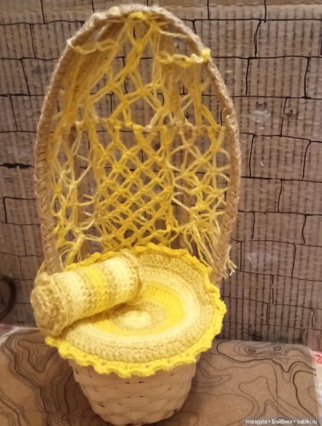 Довязала накидку- сидушку и валик для кресло-корзинки.