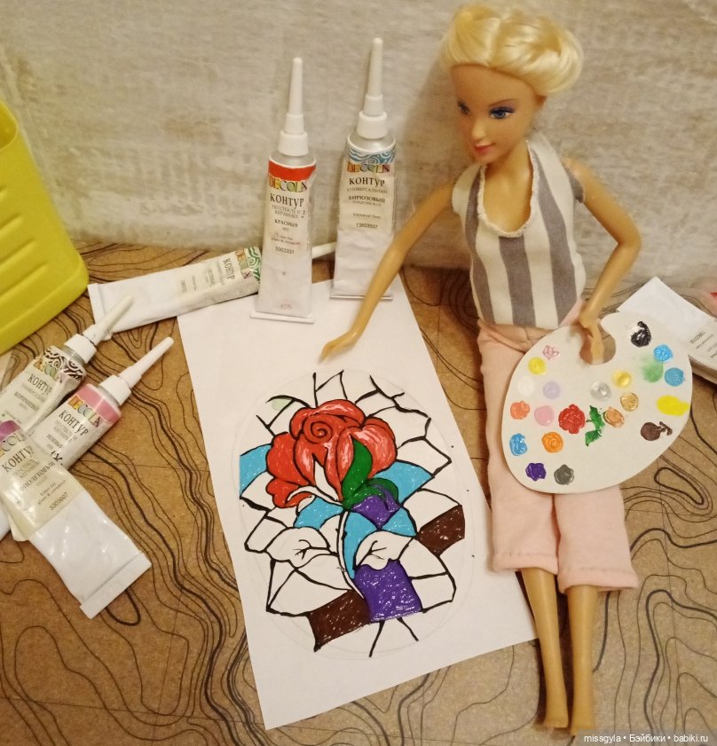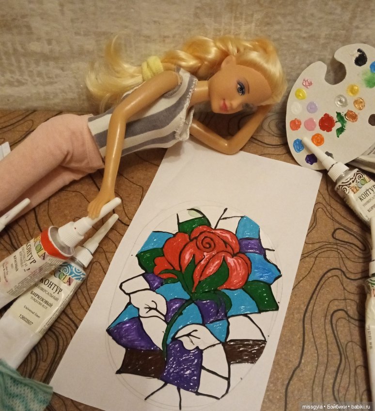 Шебутной день на работе, дома уже только релакс — рисую мини-витраж. Ашхен толи помогает, толи мечтает о чём
