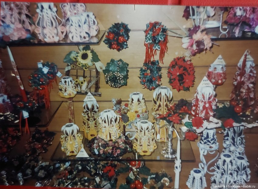Сейчас достала из альбома фотографии… Фотографии 35-летней давности! Это где-то в Испании. В то время поездки в Европу на отдых еще были чем-то удивительным… В какой-то сувенирной лавочке продавались свечи. Никогда раньше таких не видели! Это было необыкновенно! Но и стоили они не дёшево.