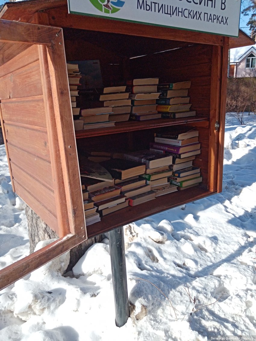 А вот в Бабушкинском парке целый дом. С несколькими столами, шахматами, книжными шкафами. Там тепло зимой и освещение. И много книг. Чисто и уютно! Я прямо в восторге была! Жалко, туда не очень удобно добираться от нас)).