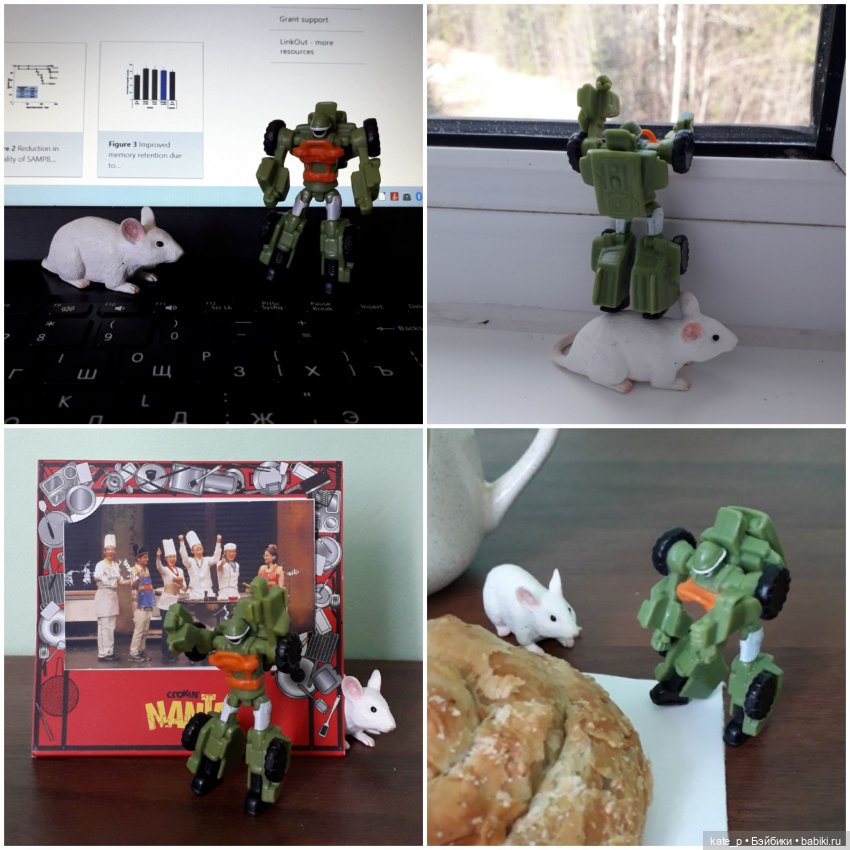 Благодаря детям приехала на работу с компанией — роботом (если не ошибаюсь, это какой-то Тобот) и мышкой. Сначала они выбрались из рюкзака и стали изучать, куда вообще попали: