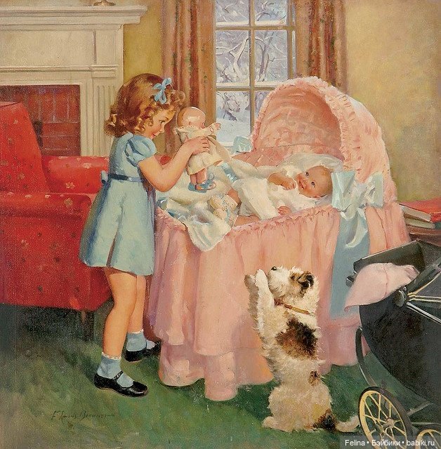 На картинах изображены дети из разных сословий, но в куклы играют все. Думаю, что тряпичную куколку любили, целовали и обнимали ничуть не меньше, чем фарфоровую барышню в шелках.