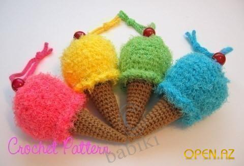 Я продолжила поиск и нашла вязаное мороженое, вязаный попкорн, торты и пирожное.
