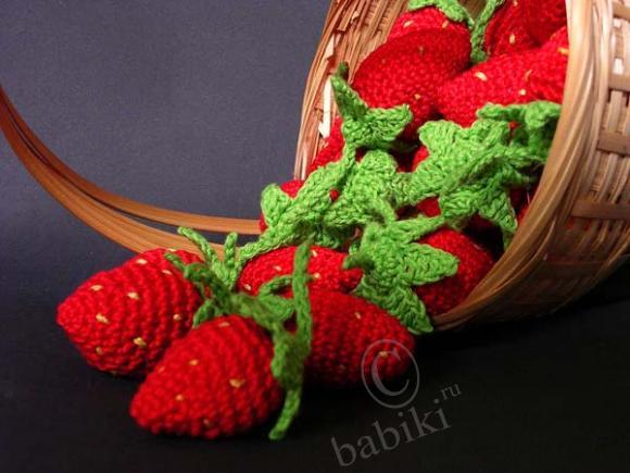 Меня пленила корзинка с вязаной клубникой.