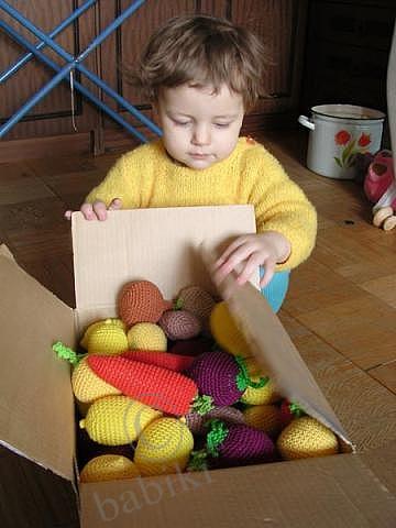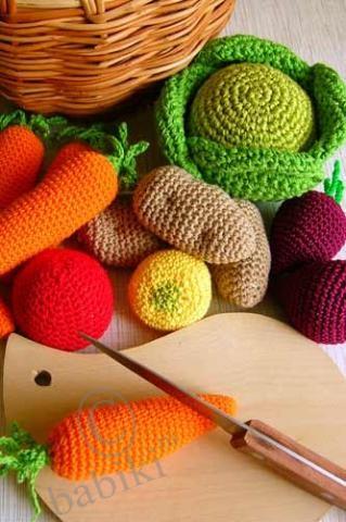 Давно собираю подборочку вязаной еды. С каждым днем вижу новые шедевры в интернете. В начале были фрукты и овощи. Очень впечатлило!