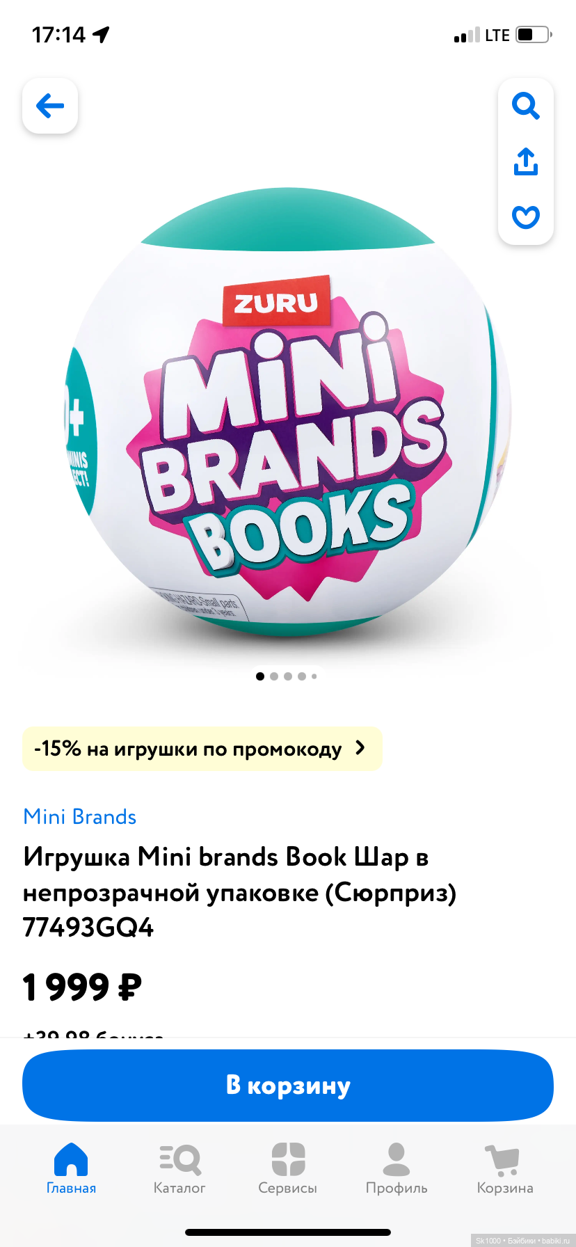 А теперь про цену: сейчас в ДМ акция и я взяла этот шар, сказав на кассе: хочу как в приложении, промокод звезда. Итого 1154 руб., вместо 1999; если б на карте были бонусы, то списала бы, но и без них норм.