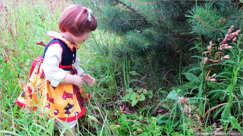 Светочка собирает ягодки.