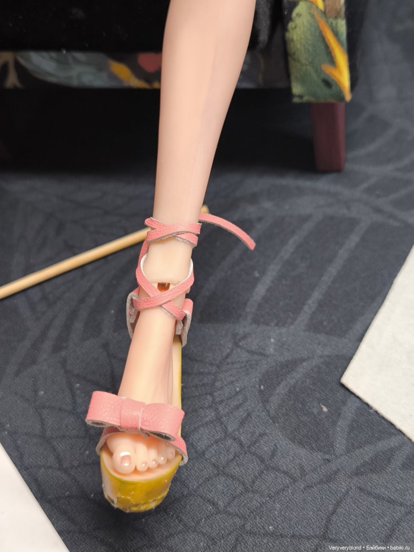 На босоножках нашла потоньше кожу и наверно попробую немного по другому ремни расположить🤔 свободновато сидят они… Хотя может это и не даст ничего… Думаю, у автора отдельно ножки для колодок печать заказать может стоит, на кукле не очень удобно подгонять…