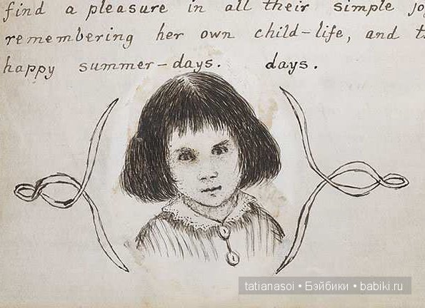 Но вот рисунки автора, просто на страницах рукописного текста — и мы наконец увидим настоящее лицо Алисы!