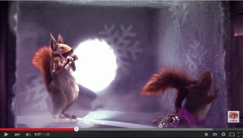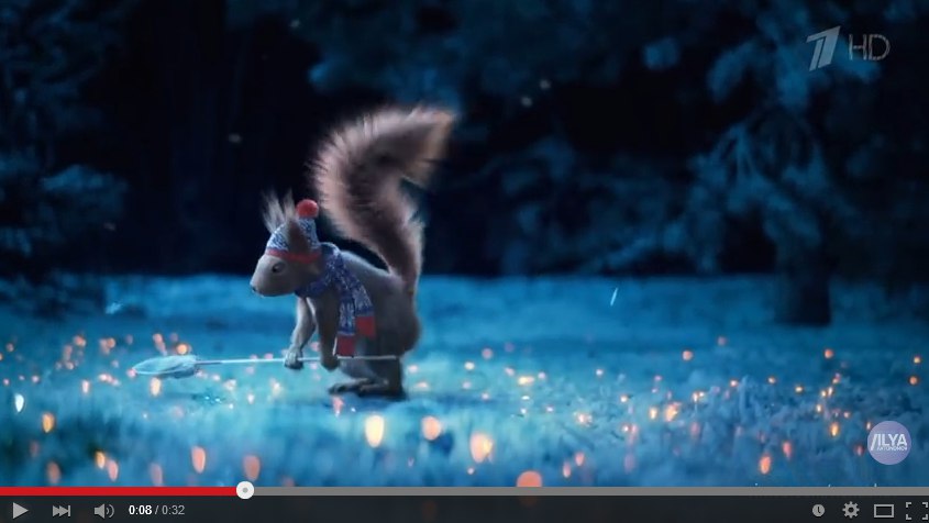 Смотрела первый канал в новогодние праздники и увидела такие смешные заставки с белочками.