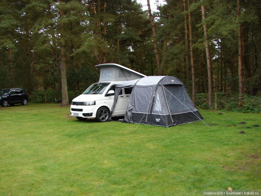 Так как у этого каравана две двери, то можно поставить два тента.