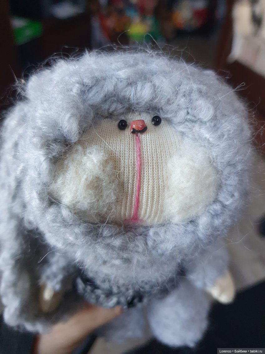 На нитке делаем небольшой узел и вставляем в область где будет глаз и вытягиваем в уголок рта немного затягиваем и делаем узел. И также с другой стороны. Потом начинаем формировать мимику лица.