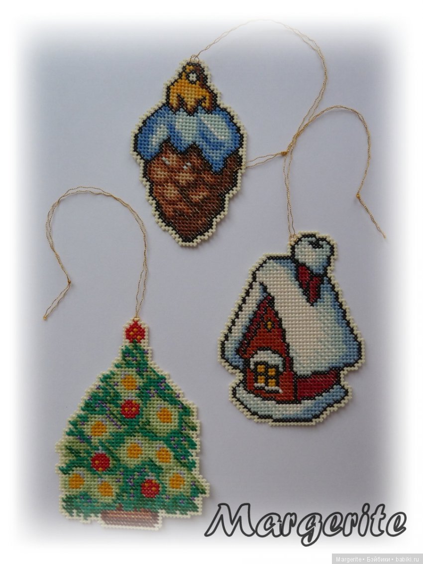 Вышитые крестиком елочные игрушки