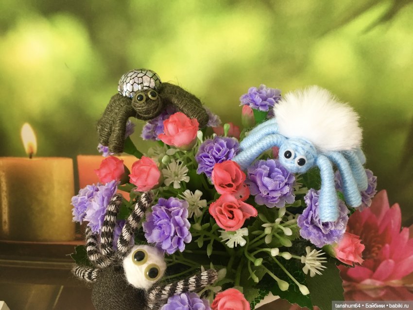 Доброго весеннего дня, дорогие Бейбики! Сегодня выходной, солнышко, но снег ещё не растаял, поэтому очень хочется добавить немного позитива в весеннее настроение! А кто же мне поможет это сделать? Ну конечно же, чудесная компания паучат от мастера Анастасии! Вы только посмотрите, как паучата развеселились, позируя для фото: