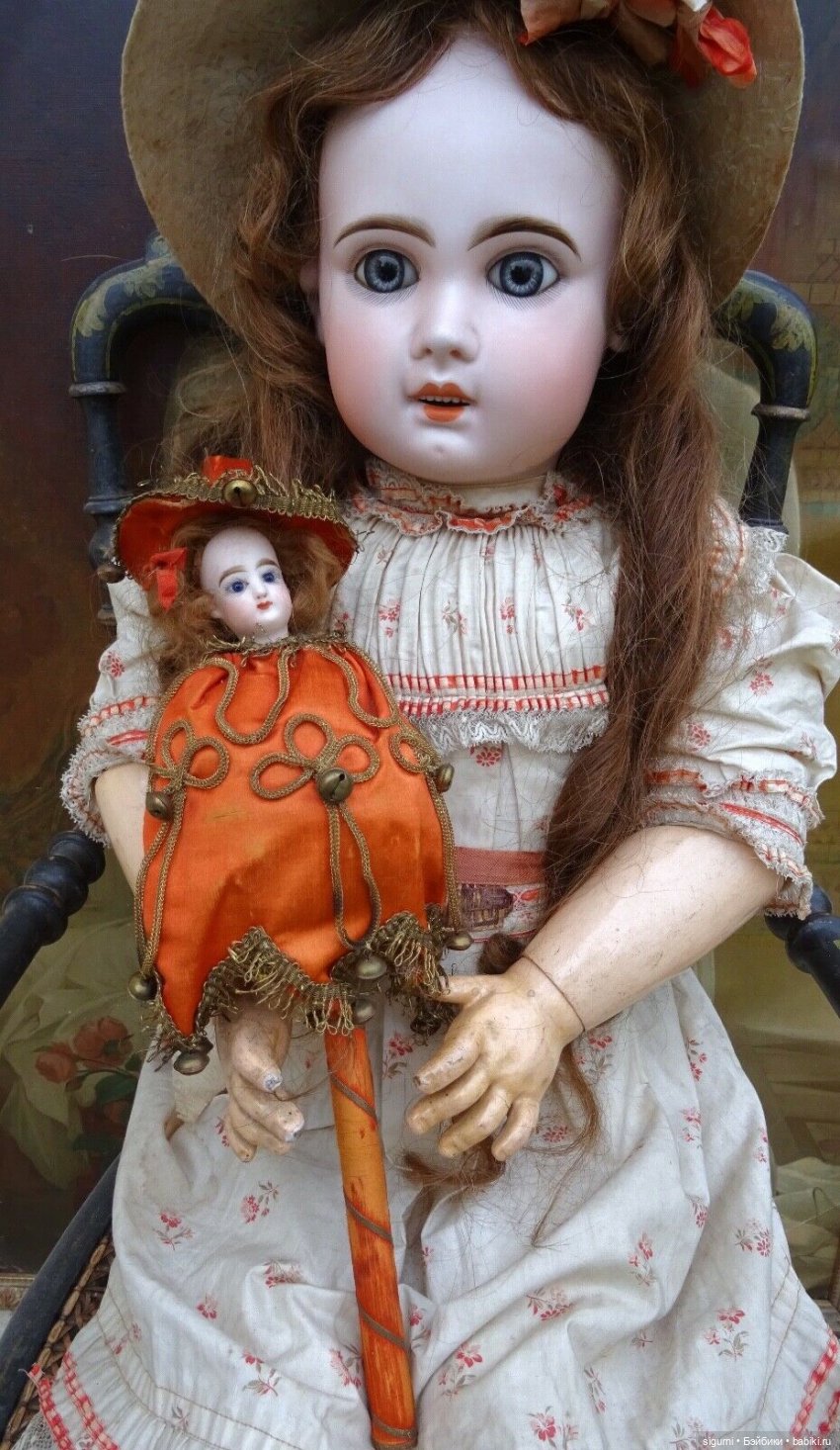 Давно хотела попробовать сделать маротте — куколку на палочке для куклы. Головешка (неизвестного происхождения) куплена была давно и ждала своего часа, постепенно нашлась палочка, кусочки тканей, тесьма и пр. Мастер-класс — это наверное, громко сказано, просто покажу, как сделала маротте. Специально не искала информацию в интернете, хотелось найти свой способ из подручных материалов. Видела только в журнале маротте с телом из папье-маше, но не захотела с этим заморачиваться, пошла другим путем. Ни на какую антикварность не претендую, чистой воды эксперимент.
