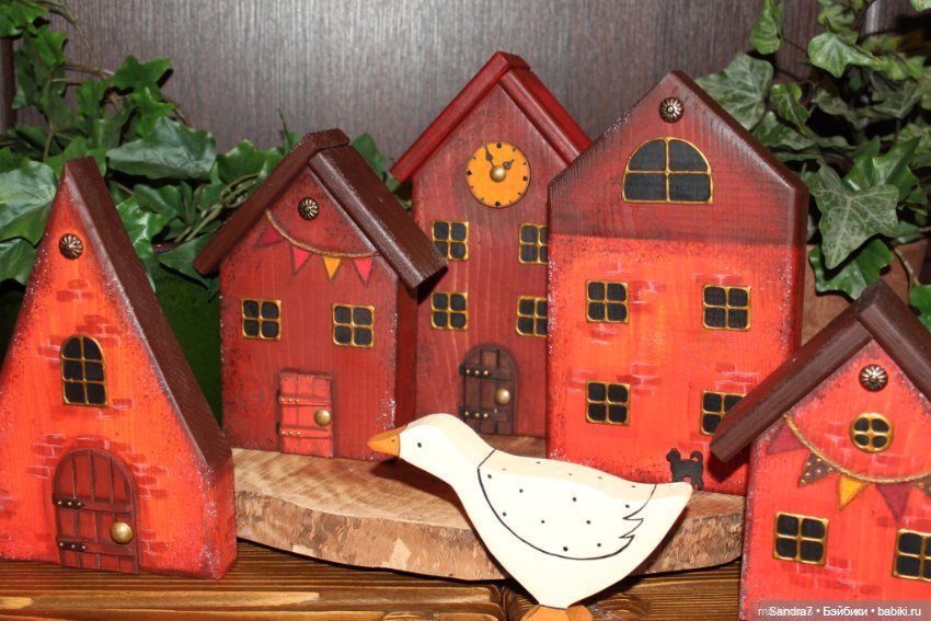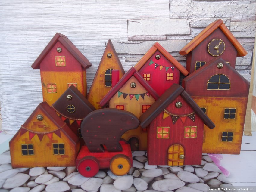 Ужасно переживала, что не успела купить семейку из пяти домиков, которая, как сейчас вижу, была куплена Вами. Прямо чуть не плакала. Долго просила Аню сделать точно такие же. Аня сделала, но только в другой цветовой гамме. К счастью, всё сошлось. Мои мне нравятся ни чуть не меньше. :)