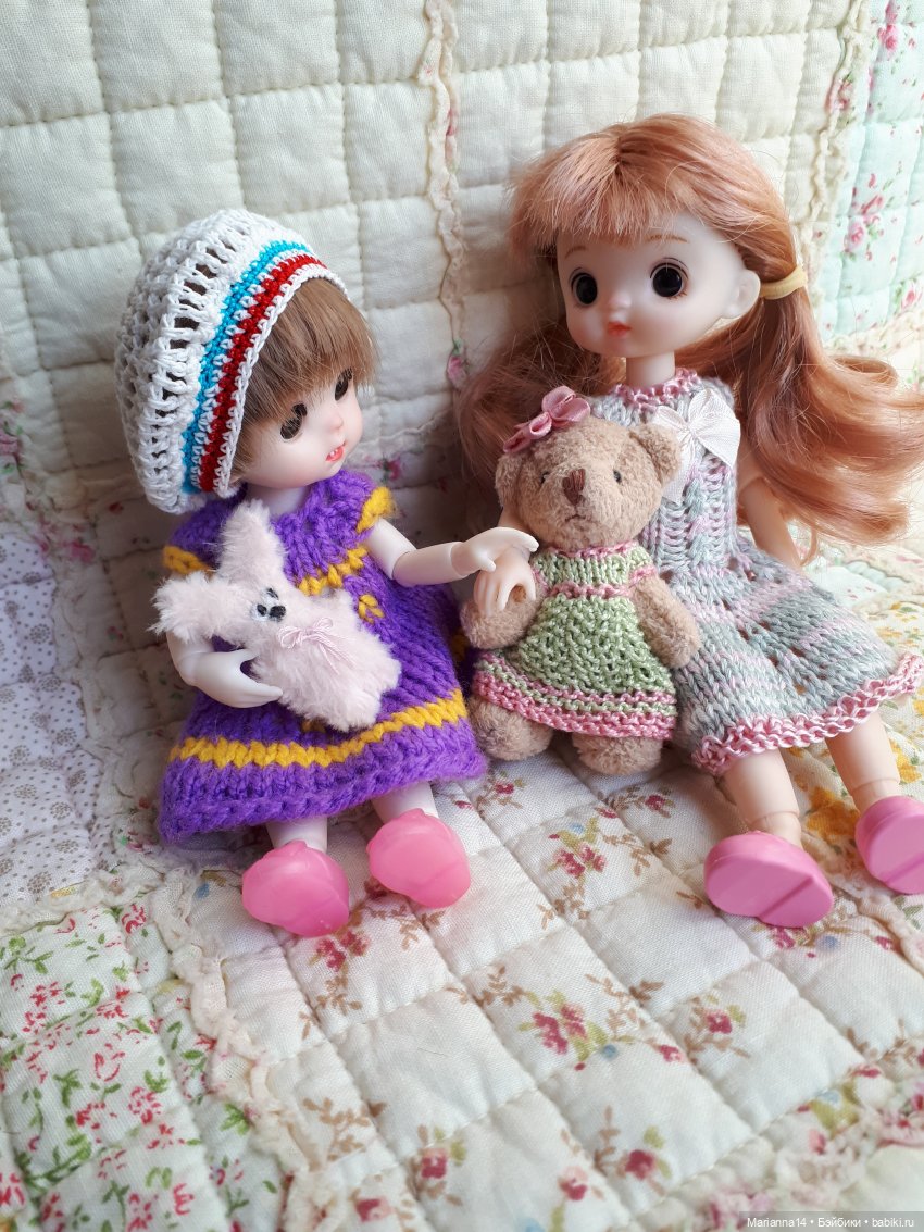 Я вяжу крючком, сделаю парочку игрушек тоже!) раньше, когда у меня не было кукол я продавала вязанные игрушки для кукол, мишки, мышки, зайчики.