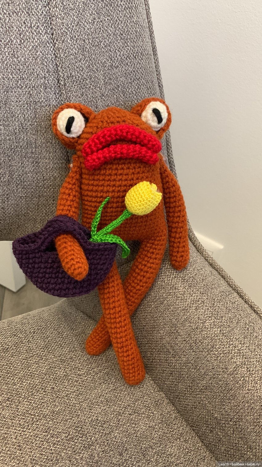 Рост лягушки 30 см, может самостоятельно сидеть.