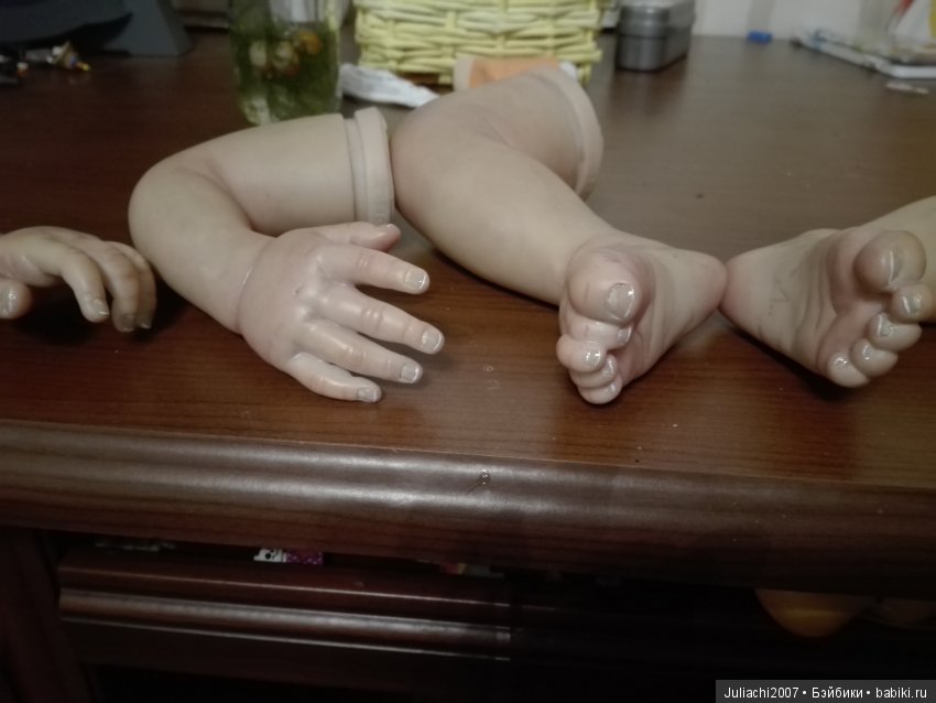 Прошу у Вас совета. Первого реборна отложила на время из-за отсутствия необходимого цвета краски генезис, жду когда пришлют. Взялась за другой молдик (12"-25см) и акриловые краски. Расписала молдик, вшила волосики, даже тельце сшила новое (из розовой байки) вместо синтетического белого. И уже готовилась к набивке и сборке малышки… и вот тут столкнулась с проблемой- КАК НАБИТЬ И ЧЕМ КРОШЕЧНЫЕ РУЧКИ/НОЖКИ на 12" Туда ни один самый маленький капроновый носочек (или даже сшитый мешочек из носочка) не войдёт… Можно ли стеклогранулят засыпать прямо в ручку/ножку до половины или даже меньше, а потом уже синтепухом дозапечатать? Может вообще ручки/ножки не засыпать утяжелителем?