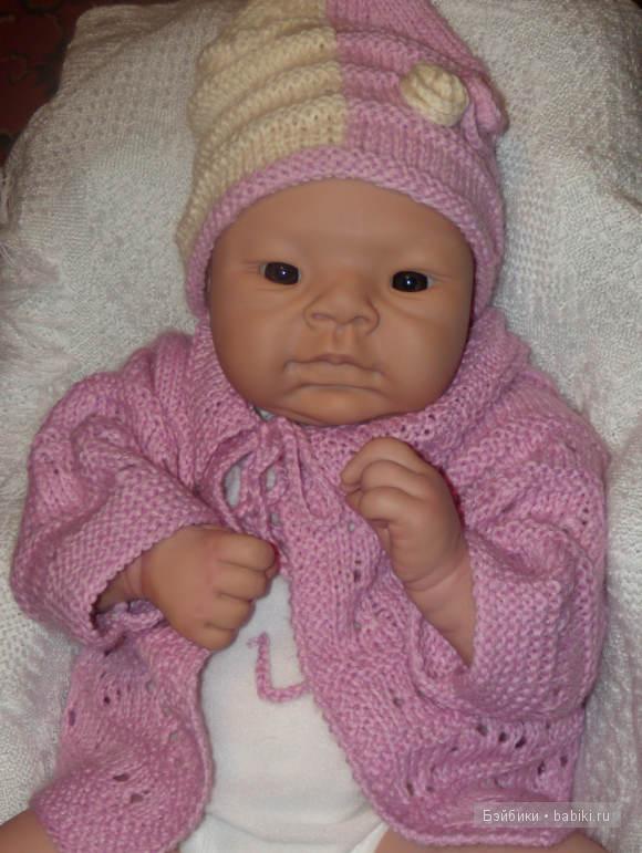 Девочка имеет загорелый оттенок кожи :) Больше хочется похвастать кофточкой, я учусь вязать и в общем-то у меня получилось. Реборнингом пока хвастать особо нечем, но я все равно покажу.