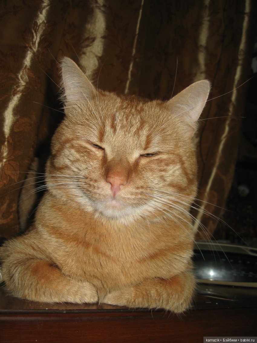 Глазки зажмурил, а левым глазом чуть-чуть подглядывает )))
