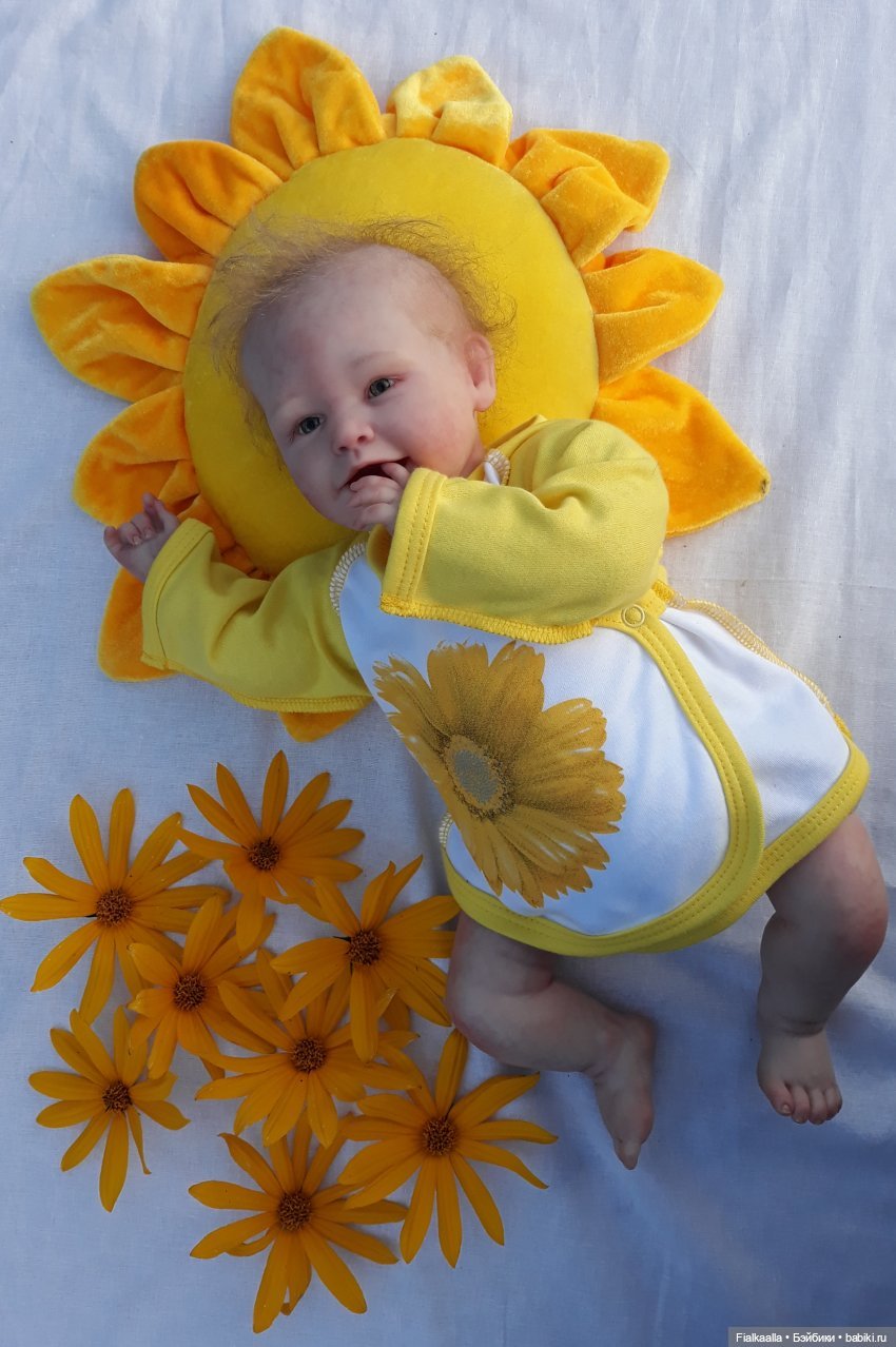 Всех с приходом весны! Хотя и не видно ещё конца холодным дням, ещё снег идёт и идёт, но настроение то весеннее). И это просто ожидание тепла, солнышка, цветов. У нас же свои цветочки дома — это реборнята. Именно поэтому и захотелось одеть свою шоколадку Жасмину в желтенький нарядик.