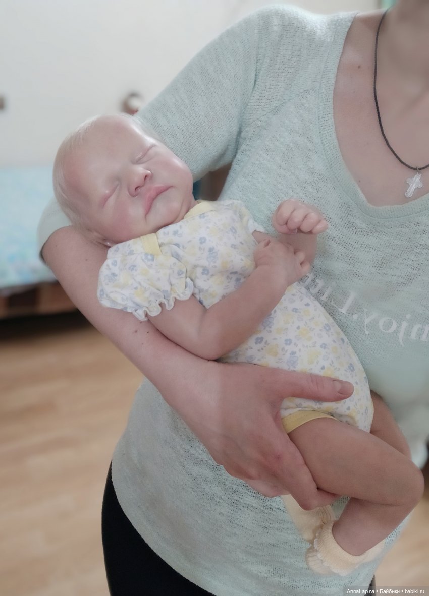 Я каждый раз любуюсь её прекрасными глазками) Следующая реборняшка у нас будет точно кареглазая (правда не скоро, но будет)
