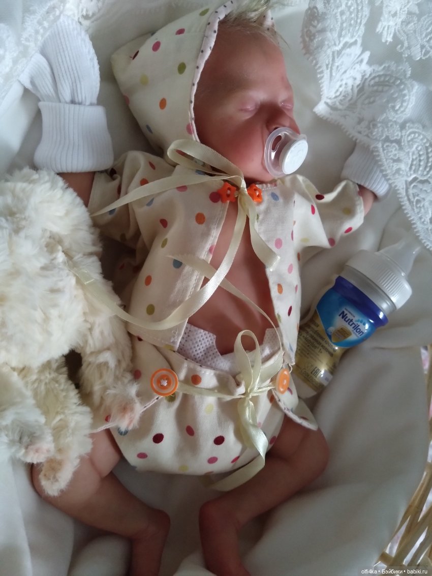 Здравствуйте! Многие из нас очень любят реборняшек сплюшек. И можно не рассказывать какие чувства они вызывают и как долго можно смотреть на мирно спящее создание. И как трогательно и мило можно носить их на руках, или с удовольствием делать фотографии. А если это создание ещё и 32 см! Ну тут только тихие восторги. Именно такая милота и живёт у меня. Чудесный молд с потрясающей пропорцией, дающей ощущение не пупсика, а именно реборнятки и очень реального. Молд Луна от Ирины Капланской это такое маленькое творение, которое не оставит равнодушным. А если одеть крошку ещё и в одежду для недоношенных!!! Да да! Именно найти вещички, которые одевают для новорожденных реальных детей, и размер одежки 30-35 см, тут и носочки, и боди, шапочки, комбезики, есть и соски, бутылочки и так далее… Тут вот море умиления, поверьте мне на слово… Я настолько прониклась этим молдиком, что не удержалась и купила ещё Луну двойняшку, скоро приедет домой вторая крохотуля. Можно я покажу вам немного фотографий моей Линочки(полное имя Каролина). А Луна я добавила вторым именем, чтобы уточнить сразу название молда. Жду в гости вас, мои дорогие друзья!