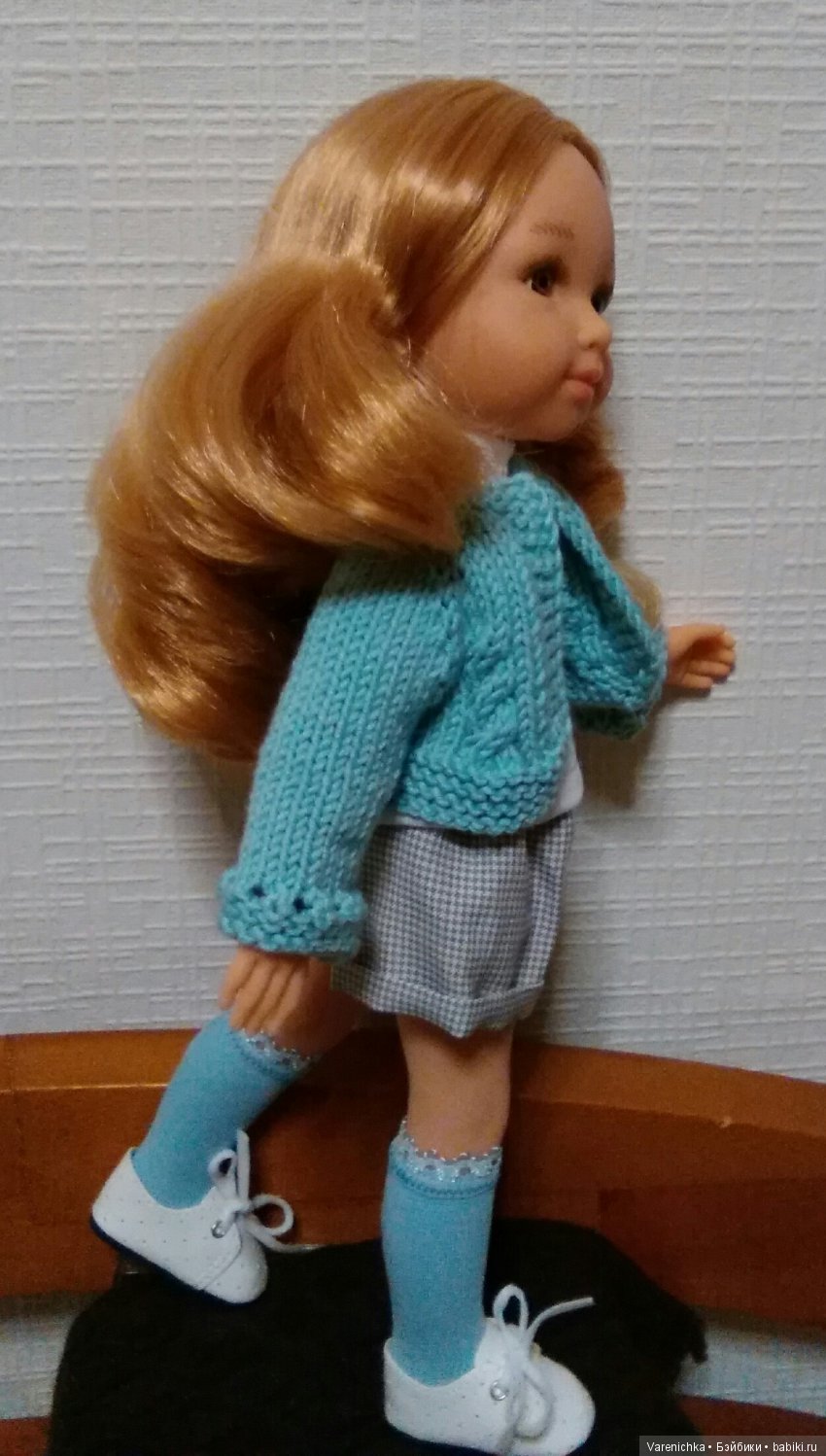 Выбирала её «живьём» на Савеловский, в свой первый отгул на новой работе. Вся одежда очень функциональная, обработана, гольфы мне подарили, кофточку уже связала. Стоит все время рядом на виду, милая, с ореховыми глазками.