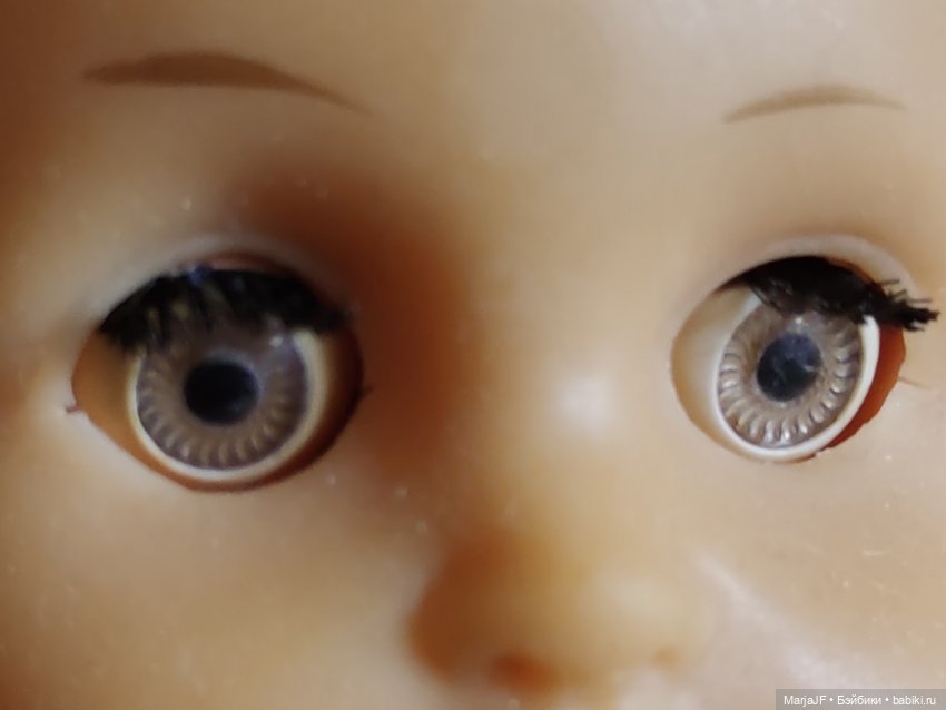 И Маша моя тоже с карими глазиками. Но когда глазики открыты и винил не страдает, можно, наверное, и так оставить. У Маши трещины пошли, поэтому капсулы вынимала.